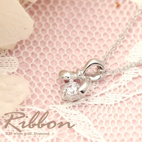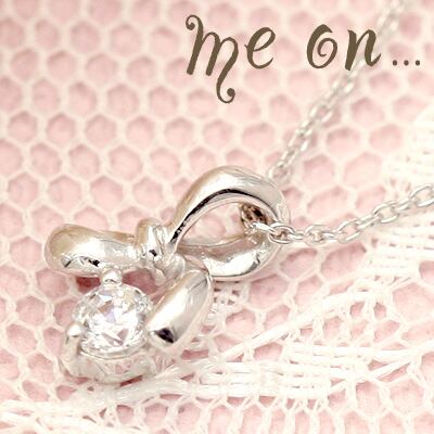 プチリボンと一緒に。小さなダイヤモンドのガーリーなペンダント◆