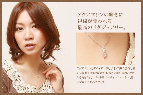 K10ホワイトゴールド、アクアマリン、ダイヤモンド