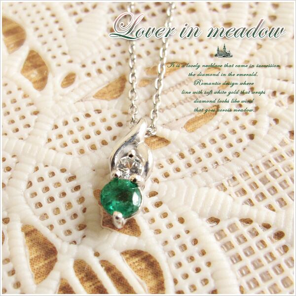エメラルドにダイヤモンドが重なった、ロマンティックでかわいらしいネックレス。